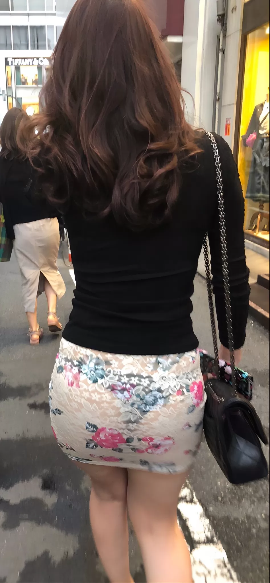 人混みの中でスケスケのスカート着用してパンティ透け見えさせているだけでも大胆なのにスカートまくり上げてTバック生尻まで出してしまう素人露出狂のおねーさんです。